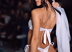 런웨이 걸어가는 서양 모델