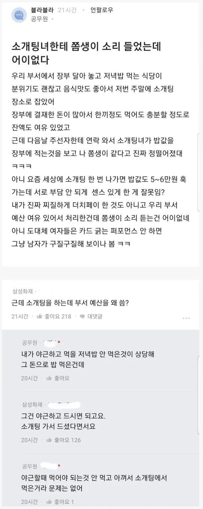 소개팅녀한테 쫌생이 소리 들은 공무원