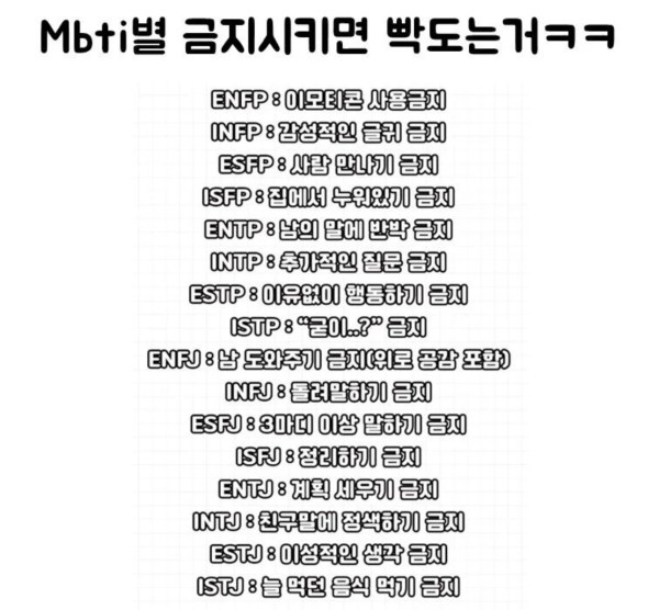 mbti별 금지시키면 빡도는법ㅋㅋㅋ 지수운영자 0 706 0 0 2024.01.22 10:18 0 0 Author 2 2 Lv.1 지수운영자 다이아 0 (0%) 등록된 서명이 없습니다.
