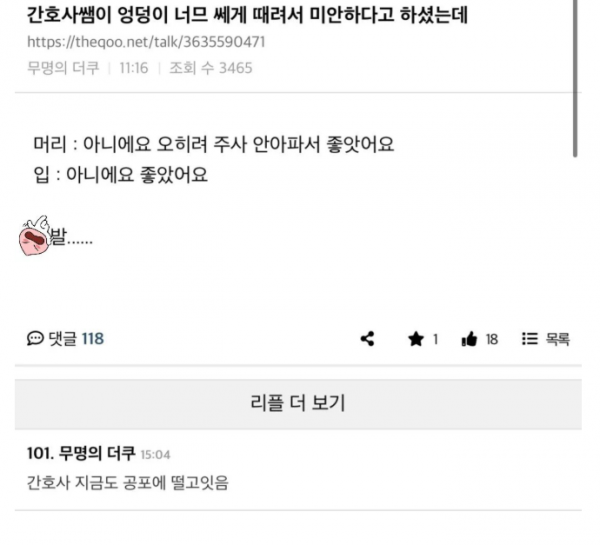 간호사쌤이 엉덩이 너무 쎄게 때려서 미안하다고 하셨는데. 휘낭시에 2 62 0 0 10.06 09:51 ㅋㅋㅋㅋ으악 0 0 Author 0 0 Lv.12 휘낭시에 아이언 56,330 (78.5%) 등록된 서명이 없습니다.