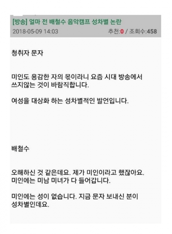 배철수 음악캠프 성차별 논란 .jpg 휘낭시에 0 78 0 0 10.05 14:45 ㄷㄷ 0 0 Author 0 0 Lv.12 휘낭시에 아이언 56,930 (85.4%) 등록된 서명이 없습니다.