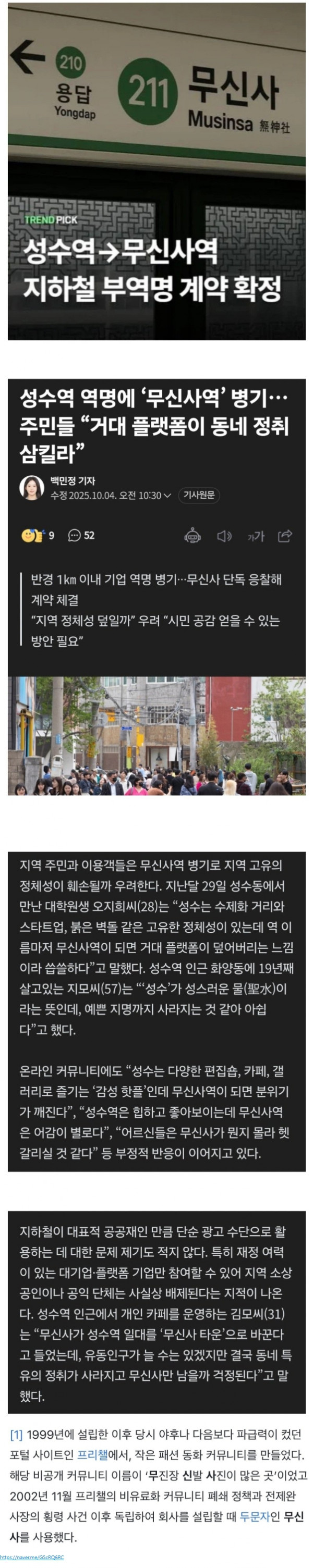 ‘무신사‘지하철역의 등장, 지역 주민들 우려 휘낭시에 0 81 0 0 10.04 18:44 엥 0 0 Author 0 0 Lv.12 휘낭시에 아이언 56,930 (85.4%) 등록된 서명이 없습니다.