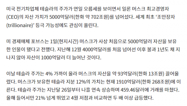 일론 머스크, 사상 첫 700조 자산 보유자 등극 올인원 2 110 0 0 10.02 17:27 이런걸보고 돈걱정은진짜없구나... 0 0 Author 0 0 Lv.32 올인원 아이언 371,670 (66.8%) 등록된 서명이 없습니다.