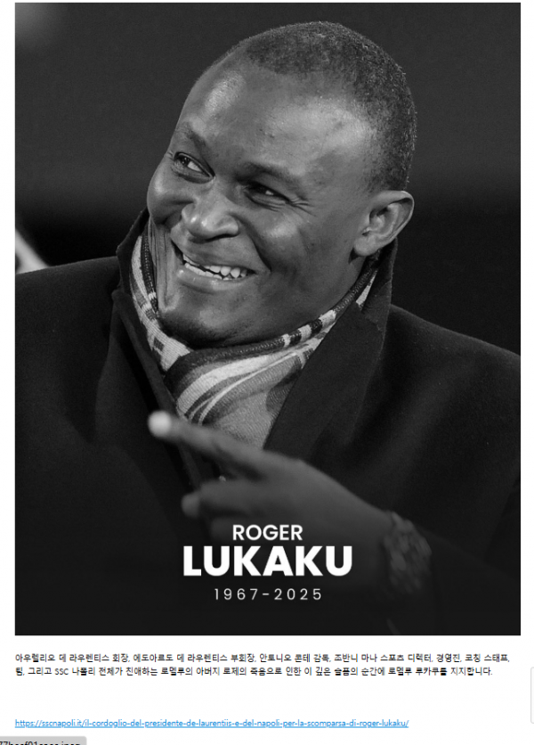 [공홈] SSC 나폴리는 로멜루 루카쿠의 아버지 로제 루카쿠의 사망에 대한 애도를 보냅니다. 붕붕이 3 126 0 0 09.30 09:20 ㅠㅠㅠ 0 0 Author 0 0 Lv.17 붕붕이 아이언 109,060 (74.2%) 등록된 서명이 없습니다.
