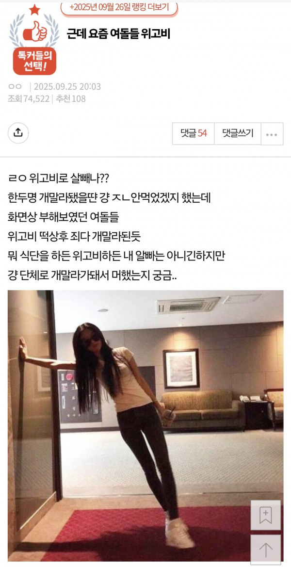 여돌들 전부 위고비로 살 뺀거라는 판녀들 그리고...... 검색 1 244 0 0 09.27 13:52 0 0 Author 0 0 Lv.28 검색 아이언 275,370 (13.4%) 등록된 서명이 없습니다.