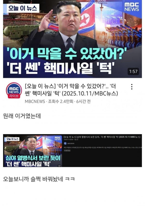 MBC 논란있으니까 은근슬쩍 제목 바꿈 ㅋㅋㅋ 붕방이 0 95 1 0 10.13 17:27 1 0 Author 1 0 Lv.32 붕방이 아이언 358,100 (7%) 등록된 서명이 없습니다.