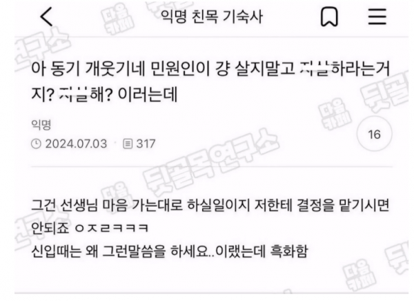 민원인 자살 안말리는 흑화한 사회복지사 .jpg 휘낭시에 1 116 0 0 10.06 16:39 ㄷㄷㄷㄷㄷㄷㄷㄷㄷ 0 0 Author 0 0 Lv.12 휘낭시에 아이언 57,130 (87.7%) 등록된 서명이 없습니다.